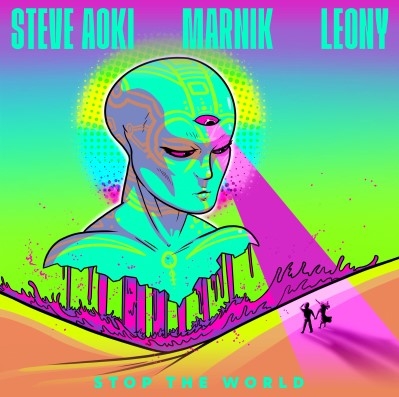 Е... това не само създава страхотна история, но също така и неустоим трак. Сингълът на Steve Aoki, Marnik и Leony, озаглавен „Stop The World”, започва с мелодичния глас на